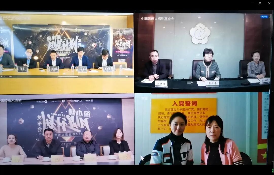2020年4月15日上午10点30分,淘小铺凡星计划爱心帮扶项目正式启动。受疫情影响,本次启动仪式采用线上云会议的形式进行,中国残疾人福利基金会理事长王乃坤,中国残疾人福利基金会集善乐业项目办公室主任刘亚衡,全国总工会原副主席、书记处书记张世平,阿里巴巴公益基金会理事长、阿里巴巴脱贫基金执行秘书长孙利军,中国肢残人协会主席王建军、副主席汪凯燕及残疾人代表等受邀参加了启动仪式。