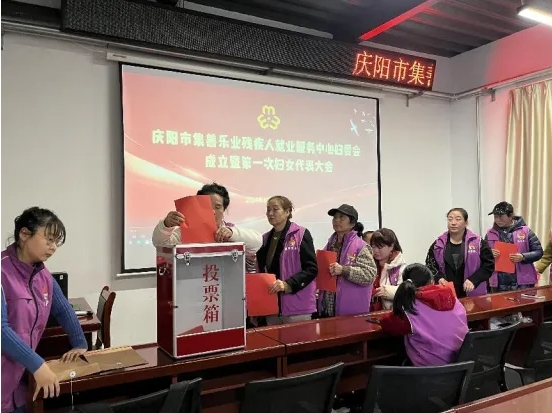 大会严格履行《中华全国妇女联合会章程》、《妇女联合会选举工作条例》的相关规定和程序,通过无记名投票方式,选举产生了庆阳市集善乐业残疾人就业服务中心妇女委员会第一届执行委员会委员5名,选举妇委会主任1名、副主任1名。