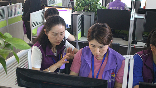 图为“集善乐业”张掖基地残疾员工正在从事话务客服工作