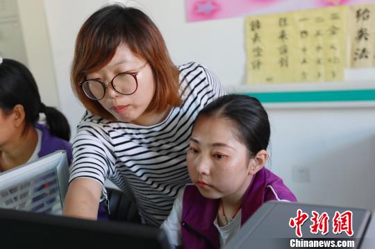 “集善乐业”甘肃张掖残疾人网络就业示范基地。 王祖敏 摄